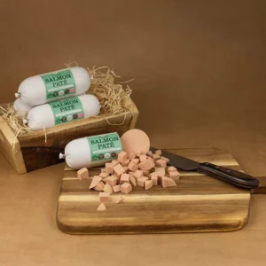 Kiełbasa dla psa 100% mięsa z łososia 400g – JR Pets