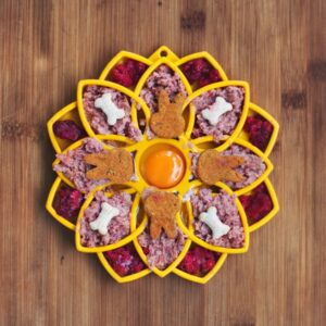 SodaPup Mandala to połączenie maty do lizania i miski spowalniającej dla psa. Została stworzona, by zapewnić psu spokojne posiłki. Doskonale sprawdza się zarówno do suchej karmy i jak i mokrego jedzenia, a także w diecie BARF.