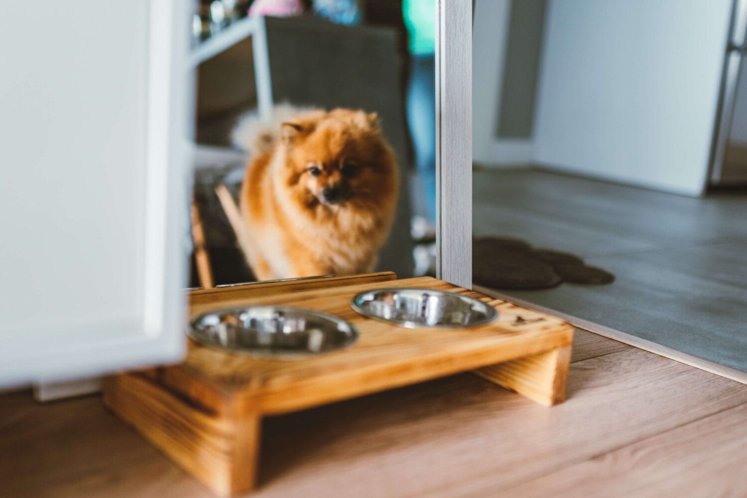 Na zdjęciach w tej ofercie znajduje się drewniany stojak marki NobleDOG rozmiar S wraz