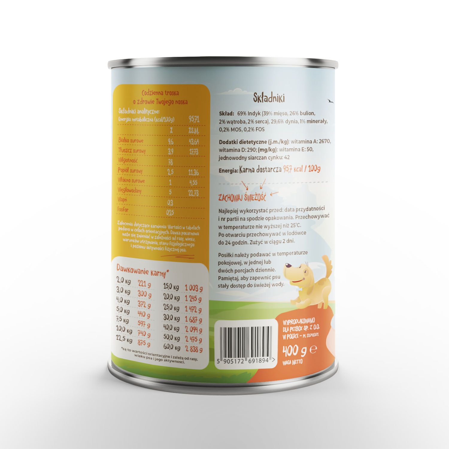 Mokra karma Indyk z Dynią LIGHT 400g Mr. Bro