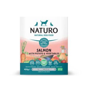 Skład: łosoś 65%, warzywa 20% (z 3,9% suszonych ziemniaków, marchwi i groszku), minerały, *olej słonecznikowy 0,75%, *olej z łososia 0,3%, sproszkowany pomidor 0,3%, suszone algi kelp 0,08%, suszona żurawina 0,05%, suszona borówka 0,05%, suszony korzeń cykorii 0,04%, drożdże 0,04%, suszona bazylia 0,016%, sproszkowana jukka 0,01%, ekstrakt z granatu 0,002%.