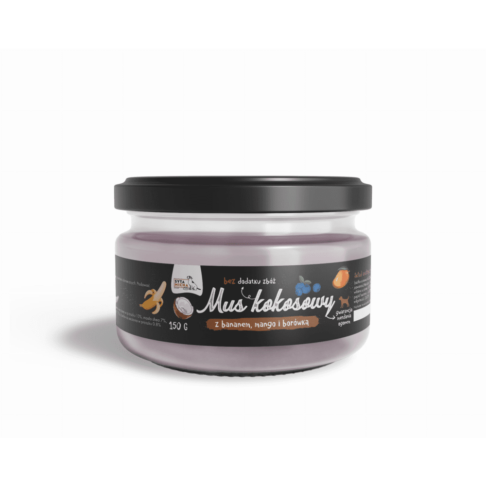 Takiego produktu zoologia jeszcze nie widziała. MUS KOKOSOWY od Sytej Michy to smakołyk w formie smarowidła z dodatkiem banana, mango, borówki oraz naturalnych prebiotyków.
