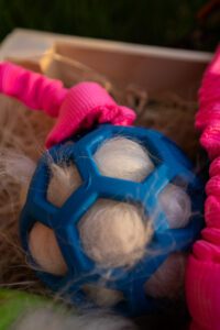 Idealna zabawka dla psów, które uwielbiają aktywność i są zmotywowane naturalnymi zapachami. Nasz szarpak z ażurową piłką z pewnością dostarczy Twojemu psu wiele godzin radosnej i zdrowej zabawy.