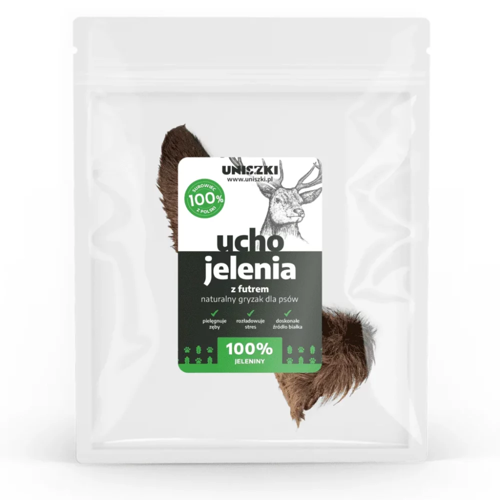 Ucho jelenia z futrem to dodatek do diety psa. Zawsze pamiętaj o zapewnieniu świeżej wody pitnej dla zwierzęcia. Podając ucho jelenia z futrem, bądź obok psa. Zwracaj uwagę, jak radzi sobie podczas gryzienia