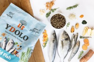 Skład: 75% świeżych ryb (25% sardynek, 25% anchois, 15% makreli, 10% dorady), 20% batatów 3% mieszanki zdrowotnej: (banan (5982 mg/kg), karczoch, cykoria, lucerna, jabłka (2393 mg/kg), dynia, żurawina (1795 mg/kg), małża zielonowargowa (1496 mg/kg), zielona herbata (1196 mg/kg), rozmaryn (897 mg/kg), tymianek (748 mg/kg) kg), oregano (449 mg/kg), ostropest plamisty, spirulina, oliwa z oliwek, juka, kordyceps (179 mg/kg), shiitake, mniszek lekarski, imbir, kurkuma), 1% olej z pstrąga, glukozamina (1000 mg/kg) , chondroityna (850 mg/kg), MSM (650 mg/kg).