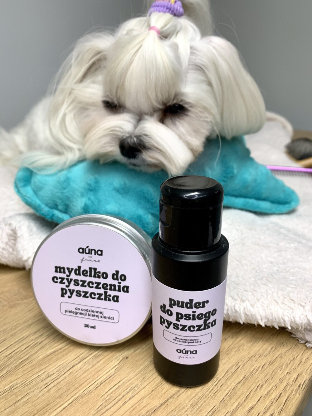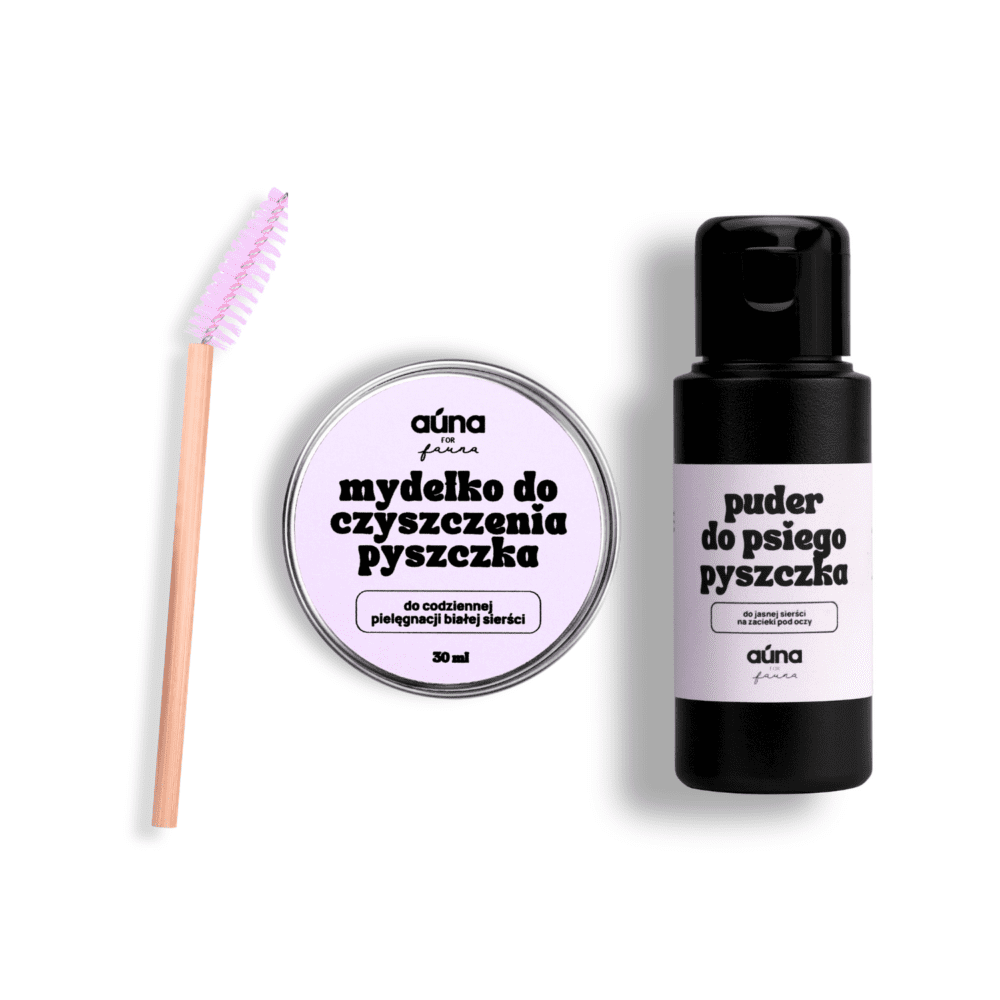 Zestaw na zacieki pod oczami dla psów (mydło + szczotka + puder) AUNA