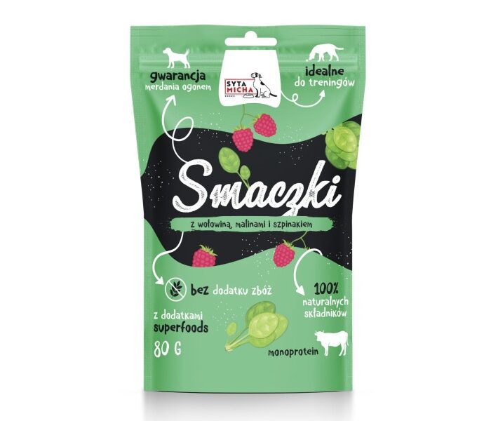 Smaczki dla psa z wołowiną, malinami i szpinakiem 80g Syta Micha