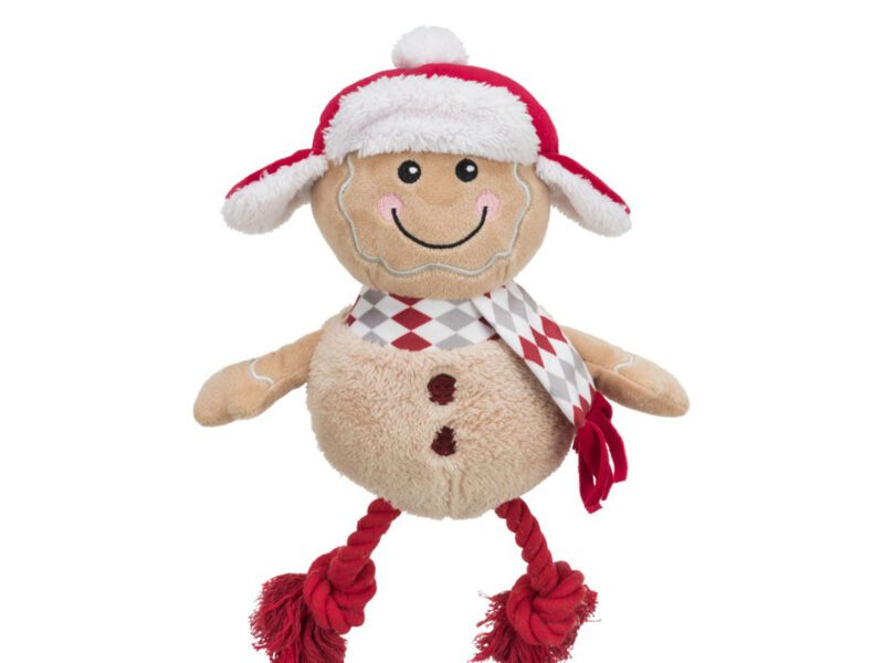 Świąteczna zabawka dla psa Ludzik z piernika ze sznurkami i piszczałką