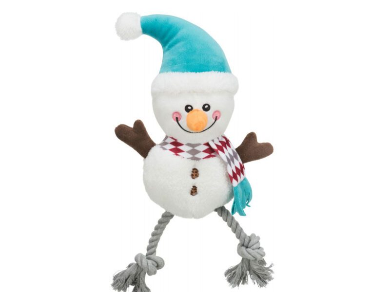Świąteczna zabawka dla psa Bałwan ze sznurkami i piszczałką
