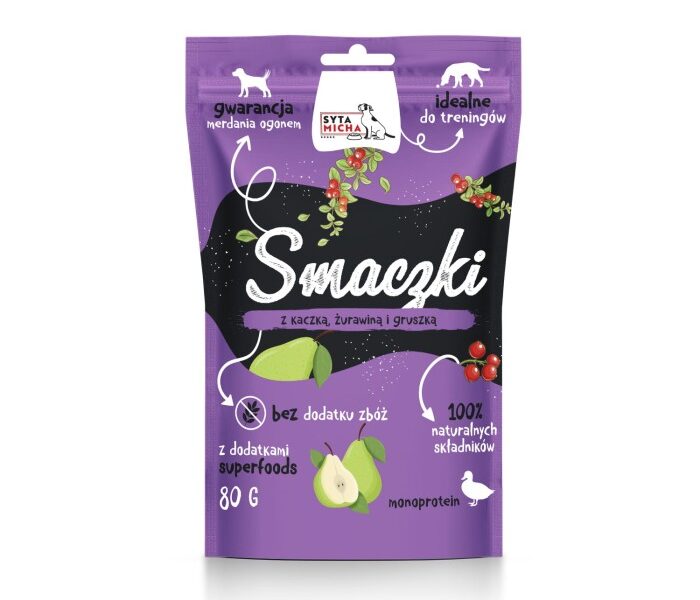 Smaczki dla psa z kaczką, żurawiną i gruszką 80g Syta Micha