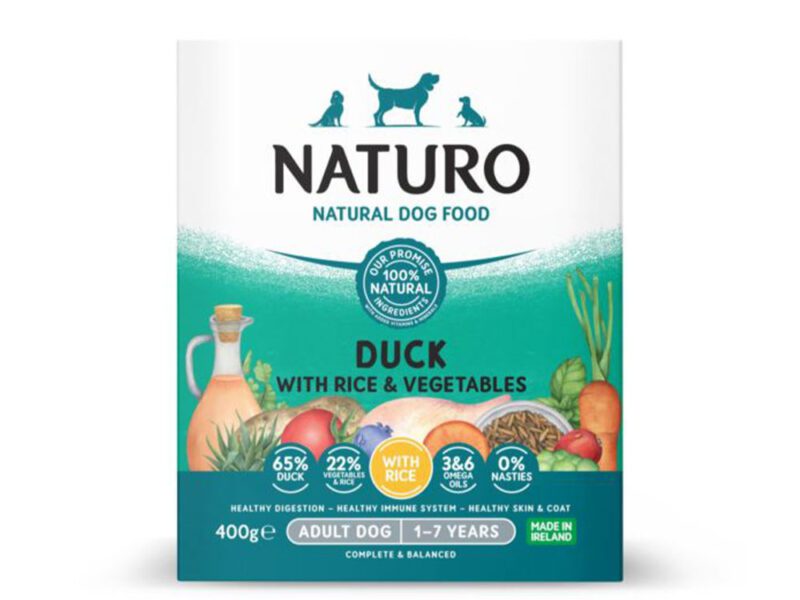 Mokra karma kaczka z ryżem i warzywami 400g – NATURO