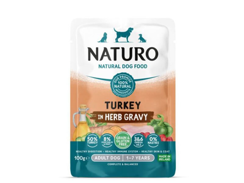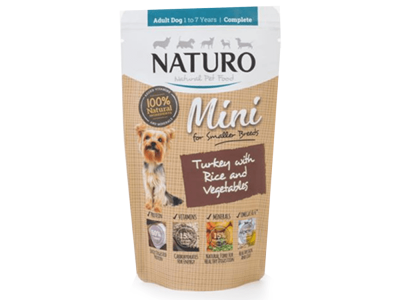 Mokra karma w saszetce indyk dla małych ras 150g – NATURO