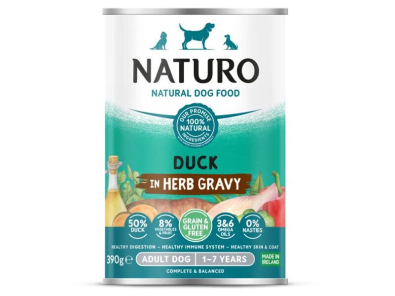 Mokra karma puszka kaczka w ziołowym sosie 390g – NATURO