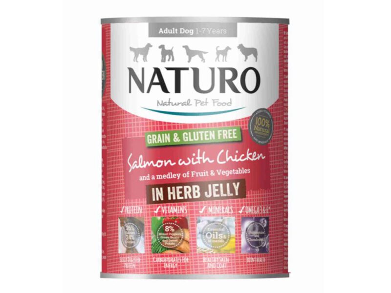 Mokra karma puszka łosoś & kurczak 390g – NATURO