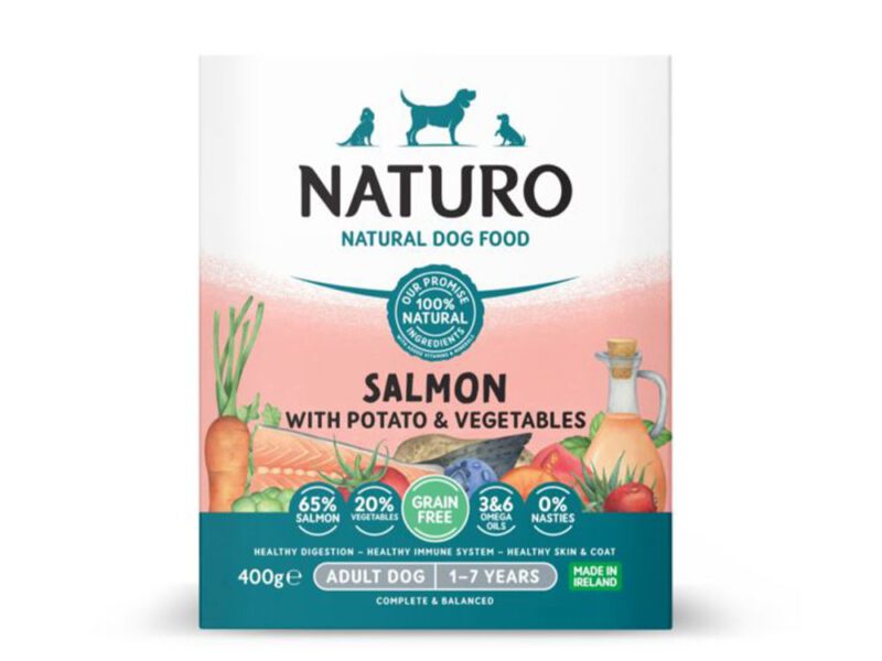 Mokra karma Łosoś z ziemniakami i warzywami 400g – NATURO