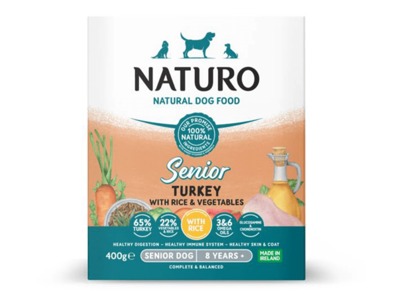 Mokra karma dla seniora Indyk z ryżem i warzywami 400g – NATURO