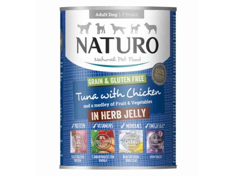 Mokra karma puszka tuńczyk z kurczakiem w sosie 390g – NATURO
