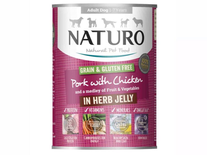 Mokra karma puszka wieprzowina i kurczak 390g – NATURO