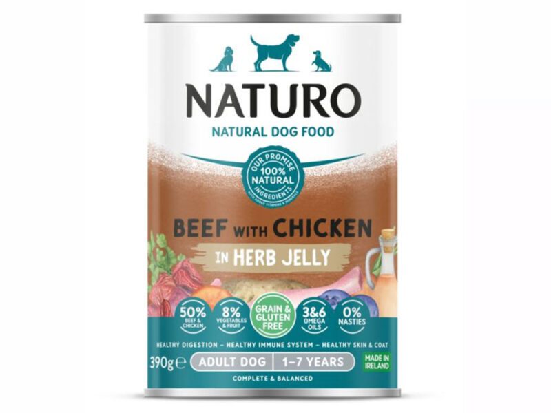 Mokra karma puszka wołowina i kurczak 390g – NATURO